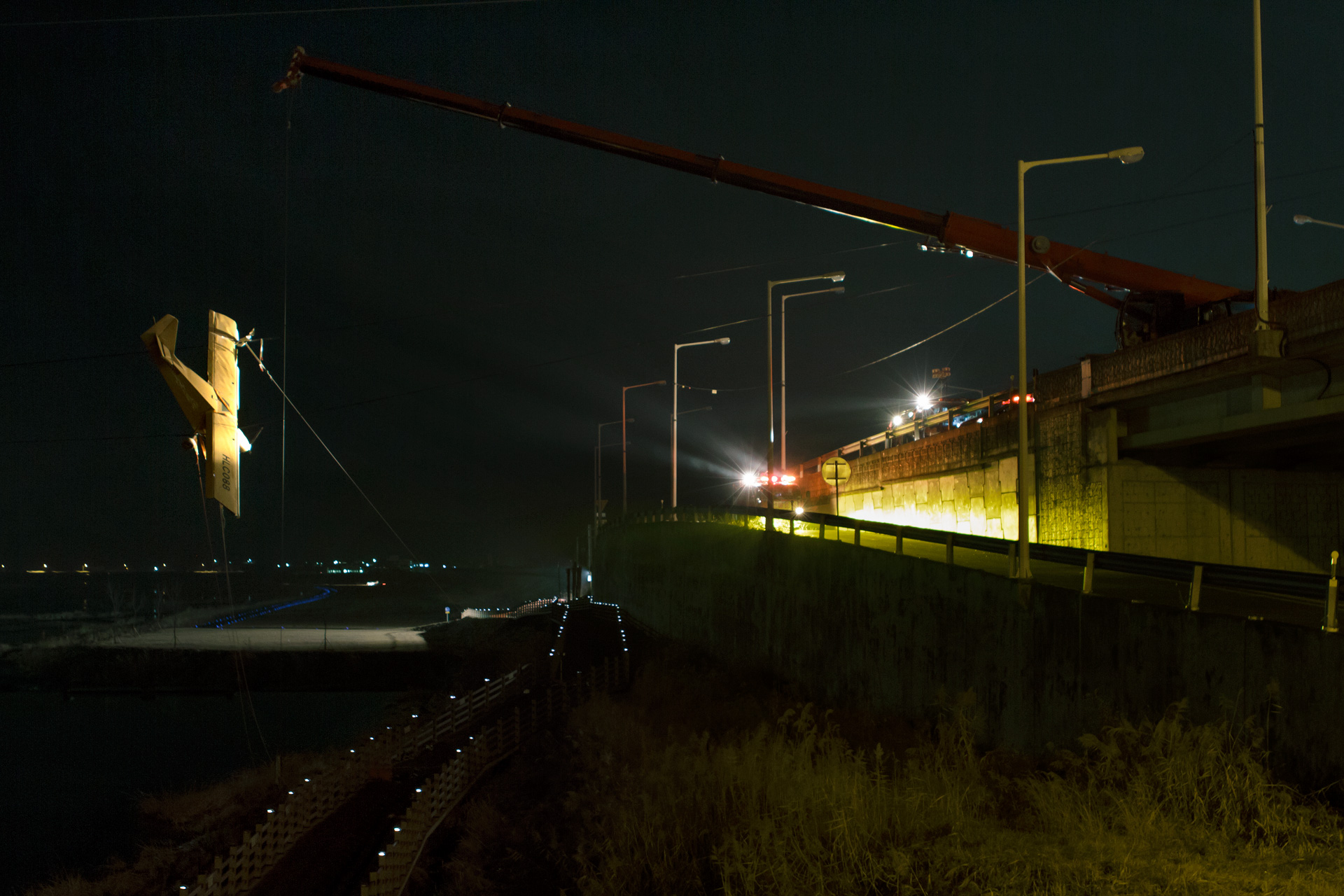 In December 2012, the pilot of a small prop plane became tangled in the high tension power cables outside of Goryeong, a rural town in South Korea.